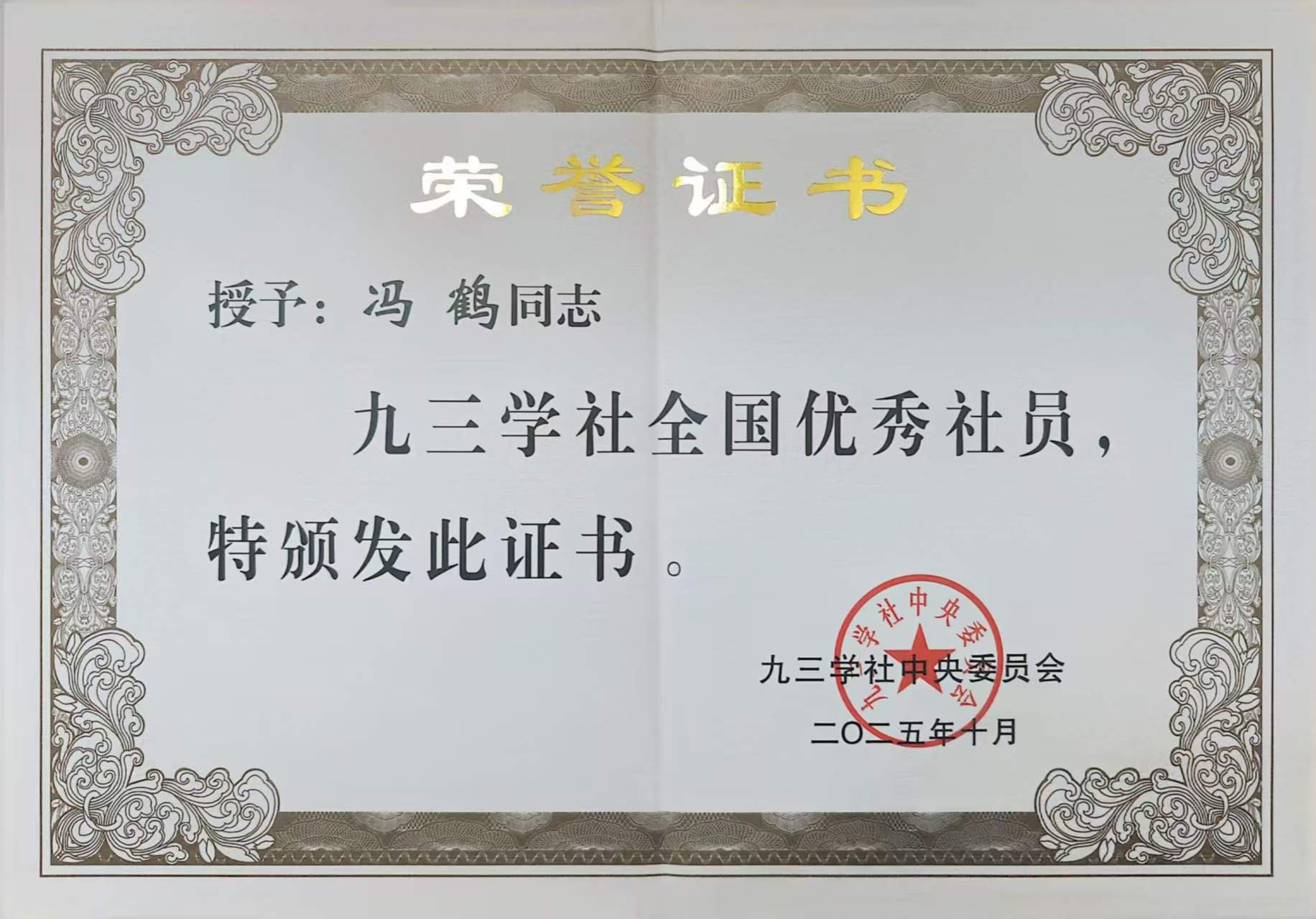 近日,在庆祝九三学社创建80周年之际,九三学社中央对优秀集体和个人进行了表彰。best365官网九三学社支社主委冯鹤教授荣获九三学社“全国优秀社员”荣誉称号。该荣誉既是对冯鹤个人贡献的高度认可,也彰显了best365官网统一战线工作的扎实成效与民主党派成员的良好风貌。