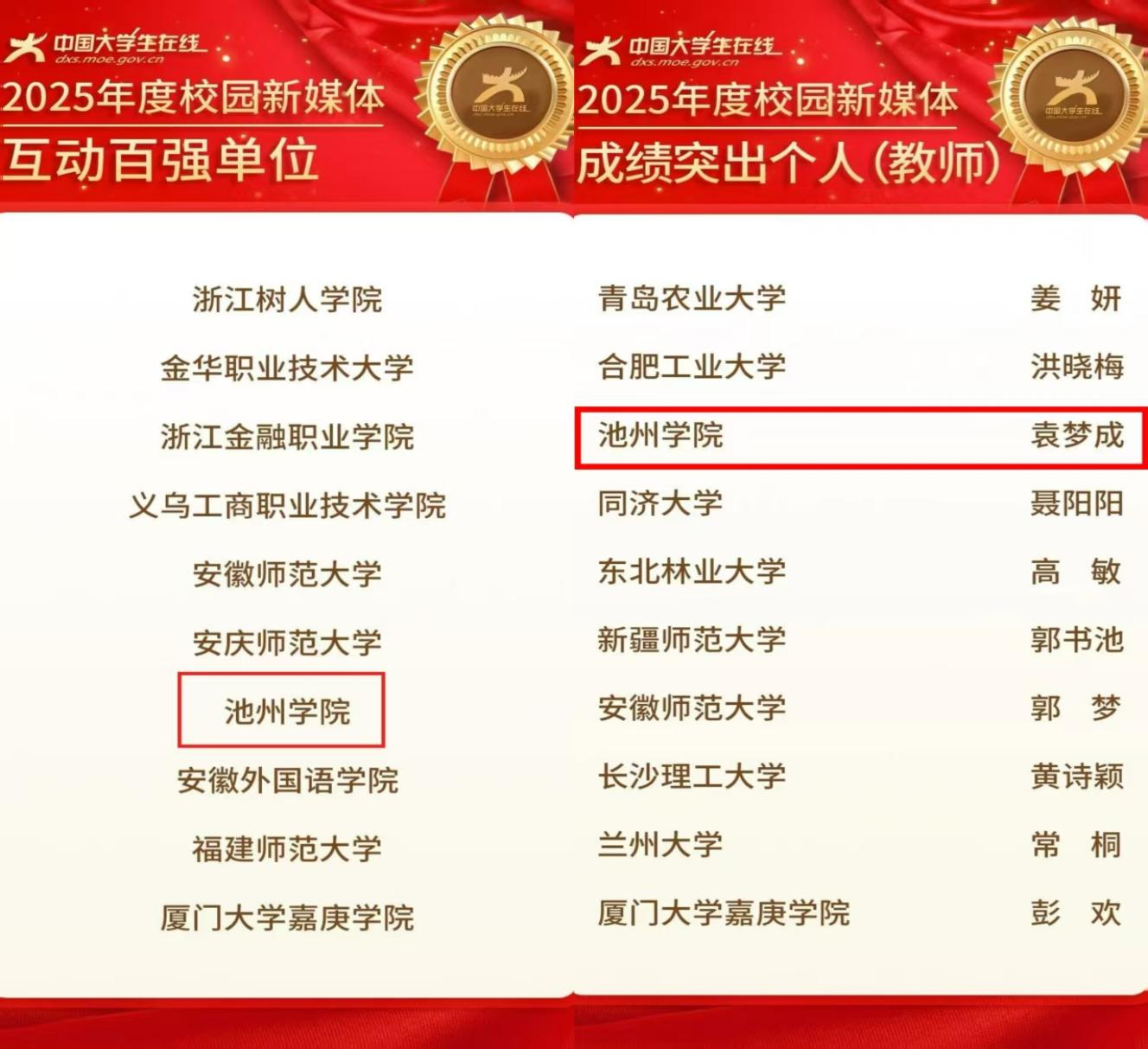 近日,教育部中国大学生在线公布2025年度校园新媒体融合共建评选结果,best365官网获评“校园新媒体互动百强单位”荣誉称号,党委宣传部袁梦成荣获“校园新媒体成绩突出个人(教师)”殊荣。这是best365官网连续第四年获该平台表彰,此前曾获“融合共建四十强”“优秀校园通讯站”“校媒人联合培养突出贡献奖”等多项荣誉。