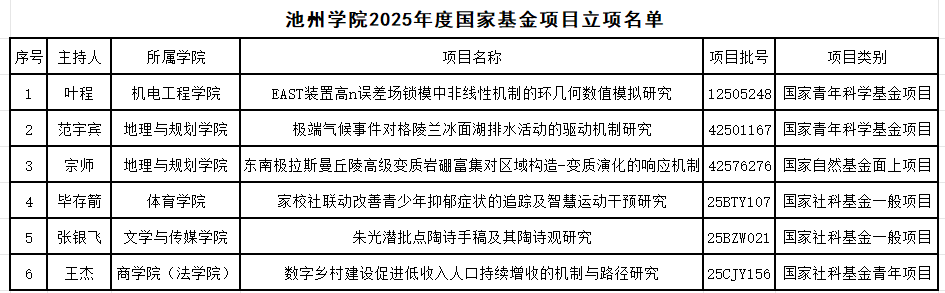 近日,国家自然科学基金委员会和全国哲学社会科学工作办公室陆续公布了2025年度国家基金项目立项结果。best365手机版官方网站立项数获历史性突破,共新增国家基金项目6项,安徽省自然科学基金项目1项;其中国家自然科学基金青年项目2项,国家社科基金一般项目2项和青年项目1项,另有1位新进博士获批国家自然科学基金面上项目1项,立项数量和层次均实现新突破,充分彰显了学校有组织科研的显著成效和持续增强的创新能力。
