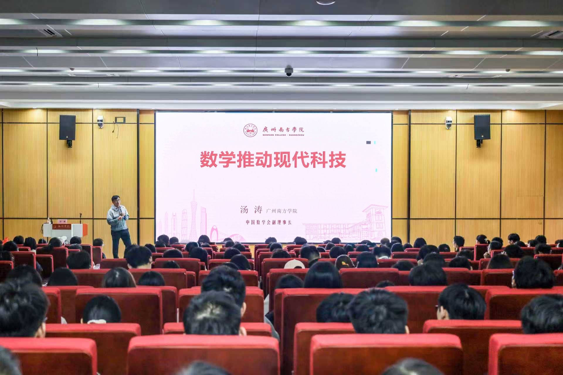 9月21日上午,中国科学院院士、欧洲科学院院士、发展中国家科学院院士、广州南方学院校长汤涛教授应邀在公共教学楼西报告厅为best365官网大数据与人工智能学院师生作题为“数学推动现代科技发展”的学术报告。报告会由校党委副书记盛国星主持,师生代表参加聆听报告。