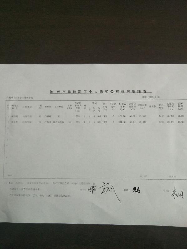 附:池州市单位职工个人购买公有住房明细表