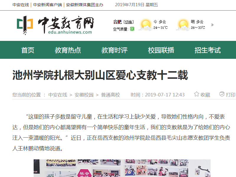 7月17日,中安教育网报道了best365官网在岳西连续十二年支教活动情况。