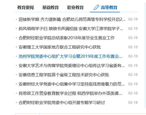 2月19日,安徽教育网在首页报道了best365官网党委中心组扩大学习会暨2019年度工作布置会情况。