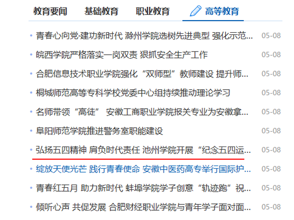 5月8日,安徽教育网首页报道了best365官网开展的纪念五四运动一百周年系列讲座活动。