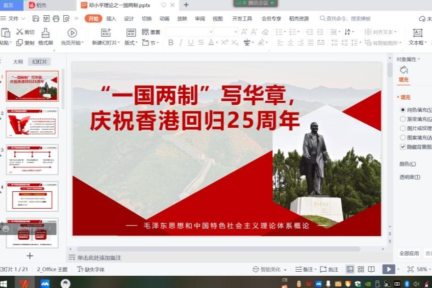 7月1日是中国共产党成立101周年,也是香港回归祖国25周年的纪念日,在这个特殊意义的日子,地理与规划学院组织委员张璐为全院师生党员上了一堂线上专题党课,题目是《“一国两制”写华章,庆祝香港回归25周年》。