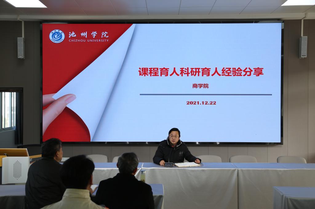 为扎实做好“三全育人”工作,进一步提升全体教师的育人能力和水平,12月21日,商学院组织召开2021年课程育人、科研育人经验交流会。商学院领导班子和全体教师参加了会议,会议由副院长吴自爱主持。会计学教研室吴铖铖、经济学教研室胡鹏、市场营销教研室徐家洪、电子商务教研室王剑程、人力资源管理教研室杨群等五位教师分别做主题报告。