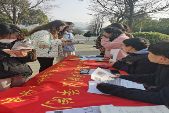 12月21日,法学院在学校一、二食堂门口举办法律咨询活动。活动现场,法学专业学生向路过同学派发法律法规宣传资料,并耐心解答同学们咨询的相关法律问题。