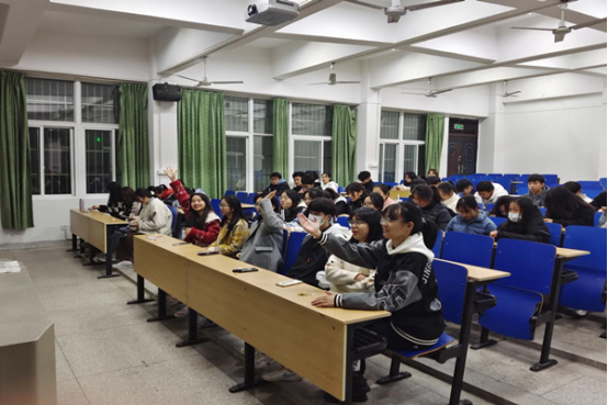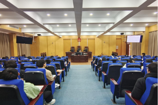 12月8日下午,法学院和贵池区检察院在模拟法庭联合举行防范电信诈骗宣传活动。贵池区检察院检察官袁曼以“远离电信诈骗,构建平安校园”为主题为同学们上了一堂别开生面的防诈骗课。