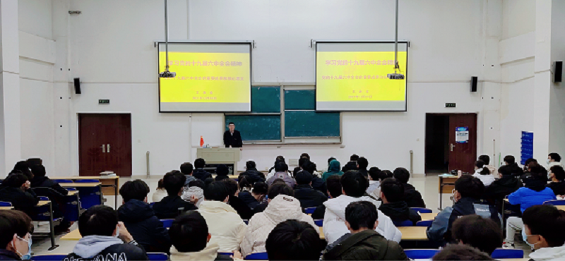 12月24日下午,机电工程学院党委书记王永金以“党的十九届六中全会的重要成果和核心要义”为题,为学院入团积极分子和新发展团员上团课。学院143名同学聆听了团课。