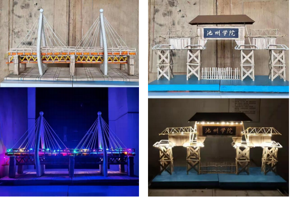 设计学专业教师在上《形态构成》这门课时,将STEAM理念融入课堂教学,大一学子在教师的指导下,制作了拉索桥、学校图书馆、新农村别墅、大鱼海棠和土楼、学校校门、跨海大桥、学院艺术楼等模型,这些模型充分展现了同学们的团队协作能力。