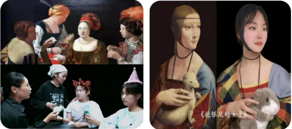 为进一步活跃课堂教学,艺术与教育学院的教师们纷纷采取了别出心裁的教学方法。美术学专业教师在给学生上《外国美术史》时布置了模仿世界名画的作业,学生们的表现惟妙惟肖,也给疫情形势下封闭管理期间的课堂教学增添了趣味和活力。