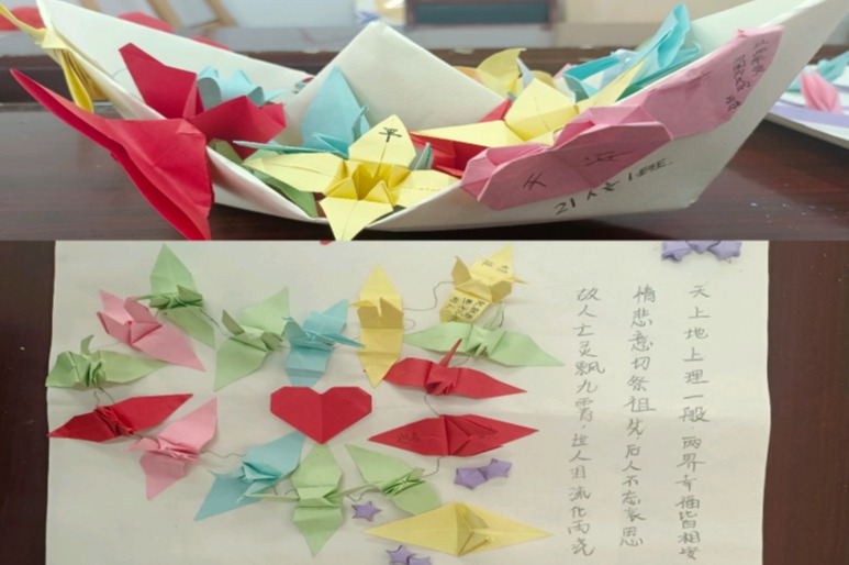 清明假期,开展了以“折纸寄情,千思远悼”为主题的手工活动,使同学们能够封校不封心,通过书写寄语表达对逝去先人的思念,惦念先烈和在MU5735航班上遇难的同胞们。