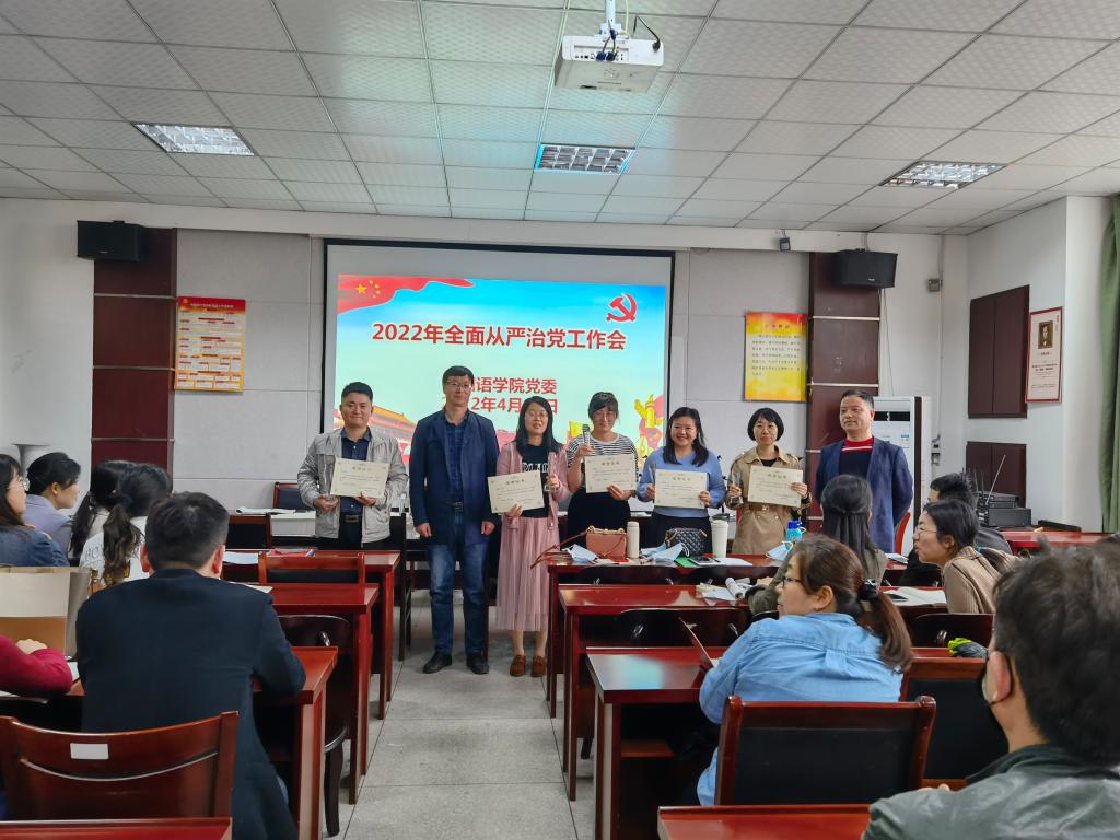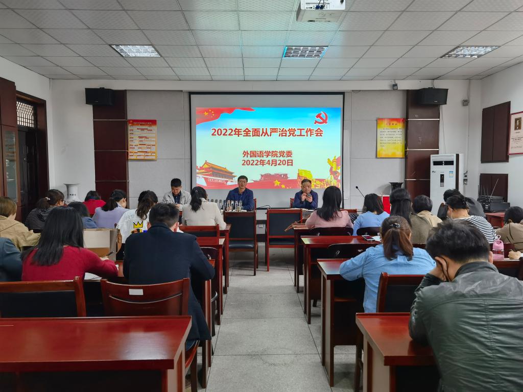 4月20日下午,外国语学院在会议室举行全体党员大会,部署全面从严治党工作。会议由外国语学院党委书记张乐民主持。