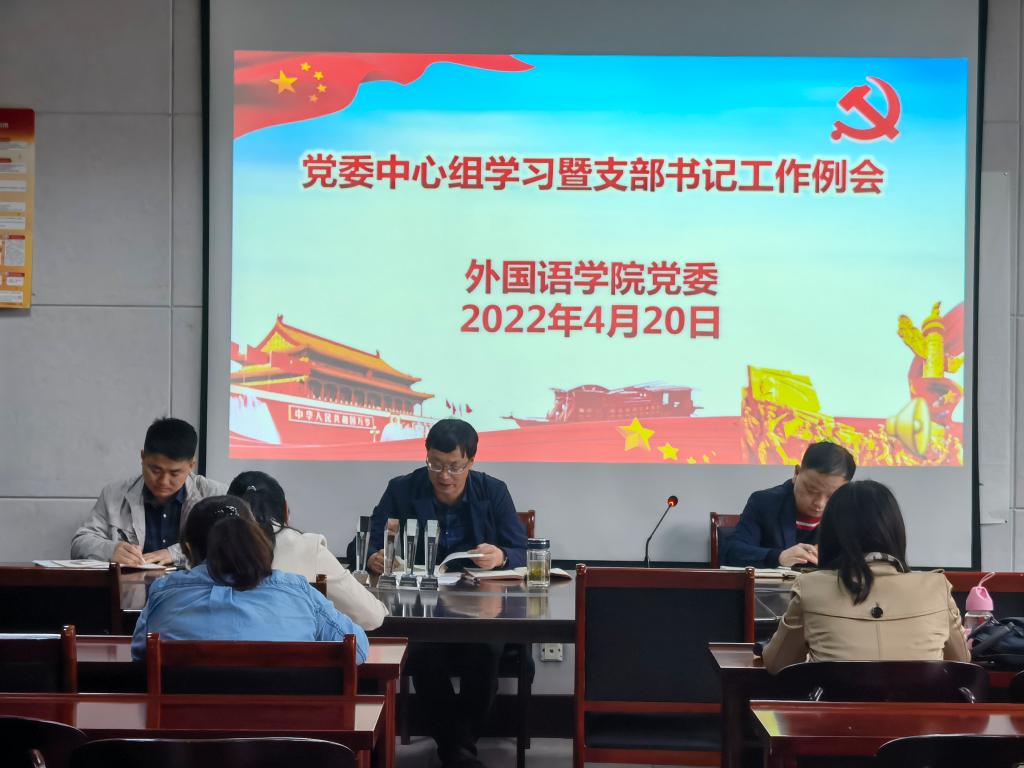 4月20日下午,外国语学院举行党委中心组学习暨支部书记工作例会。学院党委委员及各支部书记参加了会议。会议由院党委书记张乐民主持。