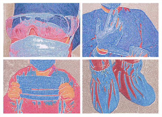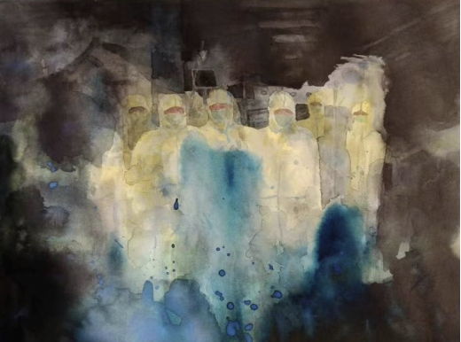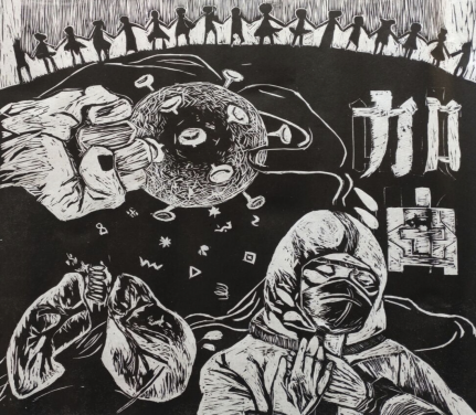 2019级美术学丁越 版画 《致敬逆行者》