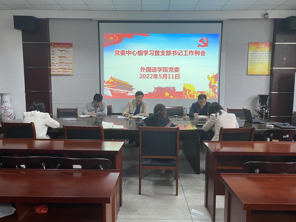 5月11日下午,外国语学院在会议室举行党委中心组学习暨支部书记工作例会。外国语学院党委委员及各支部书记参加了会议。会议由外国语学院党委书记张乐民主持。