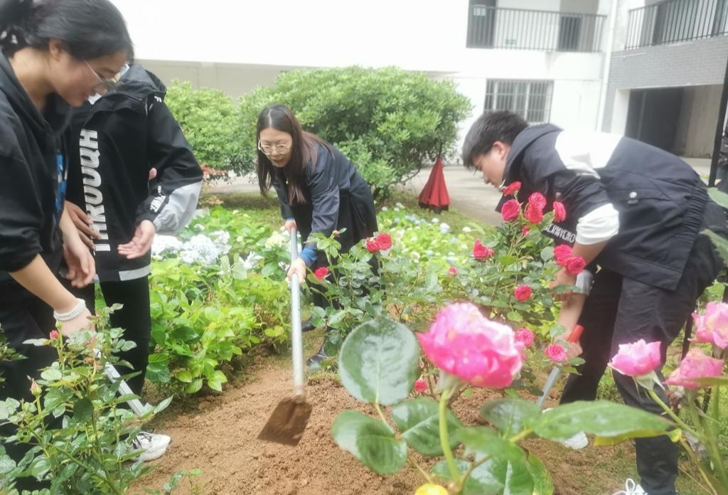 比赛结束后,决赛获奖的同学在校园种植花卉,通过实践活动共建缤纷校园。