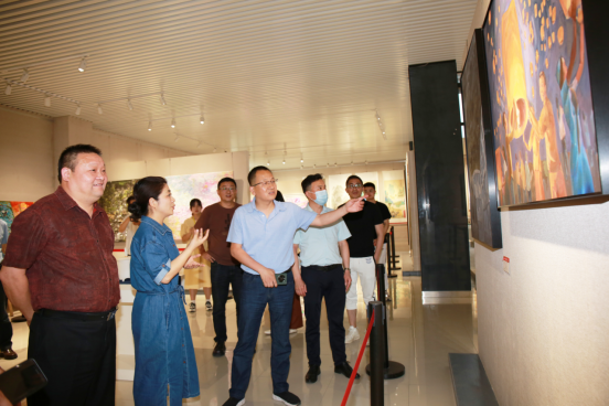 5月25日下午,池州市文联党组书记章雄军、专职副主席阮德胜一行6人到艺术与教育学院参观调研美术创作情况,院党委副书记崔国发热情接待了章雄军一行。
