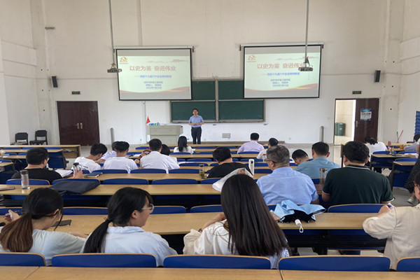 材料与环境工程学院党委书记何贵林以《以史为鉴,奋进伟业》为题给全体党员作了专题党课辅导。他从“百年华诞之际召开的盛会”、“鉴往知来,向史而新 ”和“凝聚力量踏上新征程”三个部分,对党的十九届六中全会的主要精神进行了内容详实、事例丰富的解读,为全体党员上了一堂生动的党课。党课主题鲜明、逻辑严谨,重点突出,既有理论高度,更有实践广度,具有很强的指导性和启迪性,对学院全体师生党员进一步学深悟透全会精神,践行初心使命,强化责任担当,具有明确的指导意义和促进作用。
