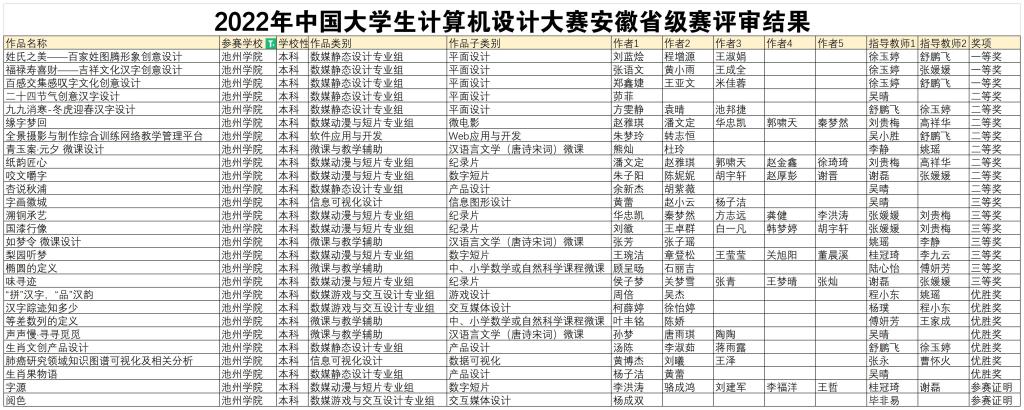 6月11日,2022年中国大学生计算机设计大赛省赛评选工作在安徽大学圆满结束,文学与传媒学院报送的24件参赛作品共获一等奖3项、二等奖8项、三等奖6项、优胜奖6项。