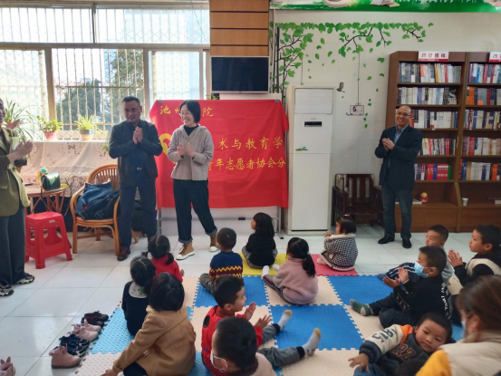 为助推文明城市创建,推广全民阅读,建设书香池州。11月13日下午,艺术与教育学院学前教育专业“小牧童”志愿服务队在池州新华书店二楼举办了首场绘本分享活动。参加分享会的有艺术与教育学院党委书记杨静、市未保中心主任钱峥嵘、市新华书店文销公司经理钱拥军、学前教育专业指导老师吴慧娴、6名志愿者及30余位儿童和家长,分享会由学前教育教研室主任谭甲文主持。