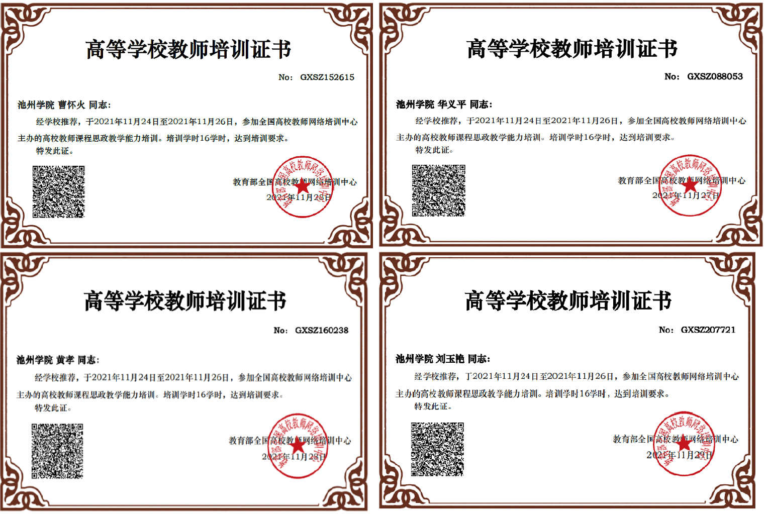 为此,学院积极组织教师参加线上培训,登录全国高校教师网络培训中心直播会议平台,实名注册并完成全部课程的学习。此次课程思政教学能力培训共有59名教师完成全部培训内容,并获得电子结业证书。