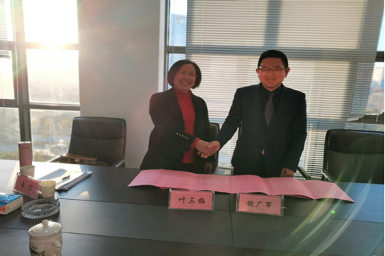 叶三梅院长与饶广军主任共同签订了《知识产权专业校所合作共建协议书》。