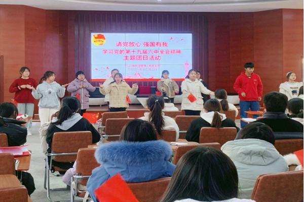 活动邀请了校团委书记程海峰就十九届六中全会精神要点进行了宣讲,团支部成员围绕着十九届六中全会精神学习谈收获谈感悟,还穿插了歌曲《少年》、诗歌朗诵《百年答卷》等文艺活动。