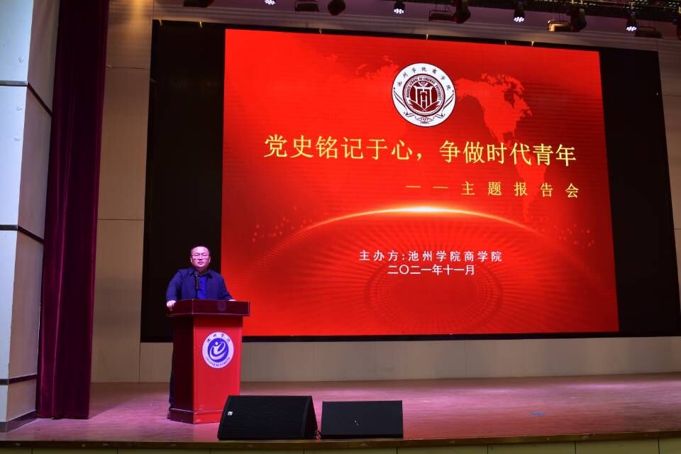 为了充分发挥优秀大学生的榜样示范作用,激励广大学子成长成才,11月17日下午,商学院在博古大礼堂举办了 “党史铭记于心,争做时代朝阳”主题报告会。院党委副书记肖宁生,行政(学生)办公室主任胡刚,团委负责人王琴和辅导员代表及2021级部分学生代表出席了报告会。