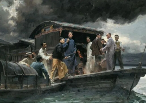 高擎民族精神火炬,吹响时代前进号角,凸显社会主义文艺辉煌成就,把理想融入党和人民事业之中,做到胸中有大义、心里有人民、肩头有责任、笔下有乾坤。如学生党员牟伟讲述的何红舟,黄发祥油画作品《启航中共一大会议》,作品采用写实主义手法,再现了中共一大南湖会议的历史瞬间。