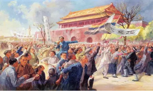 记录历史的经典是我们获得历史知识、激活红色基因的最佳途径。学生预备党员刘星星讲述的董希文创作的油画作品《开国大典》,充满了新中国诞生时人民意气风发的豪情,场面气势恢宏,喜庆气氛热烈,成功地表现了“中国人民从此站起来了”这一庄严的历史时刻。