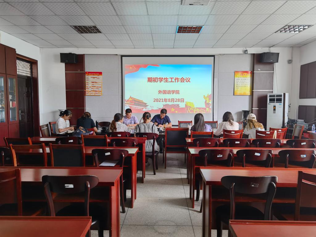 8月28日下午,外国语学院在会议室举行期初学生工作会议。外国语学院党委书记张乐民出席会议,全体辅导员参加会议。会议由院党委副书记刘军主持。