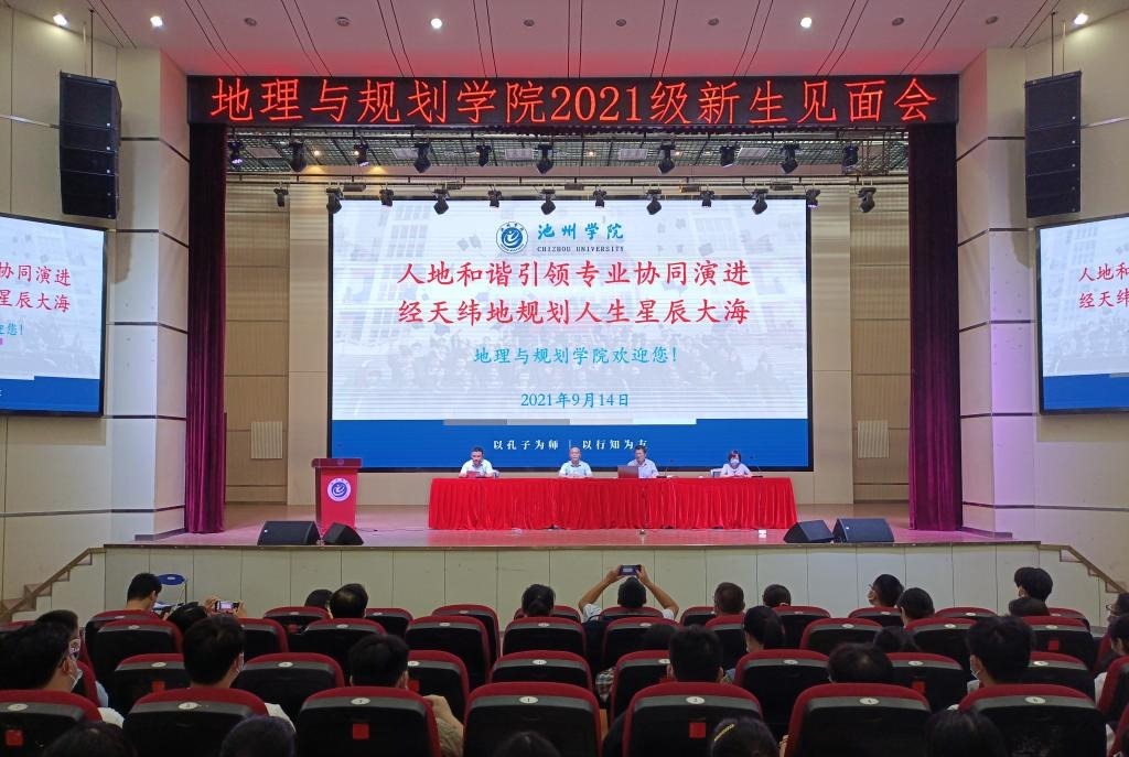 9月14日上午,地理与规划学院2021级新生见面会在博古楼大礼堂举行。地理与规划学院党委书记崔泽玉、院长张乐勤、副院长胡和兵及部分专业教师、2021级新生班辅导员参加了见面会。见面会由胡和兵主持。