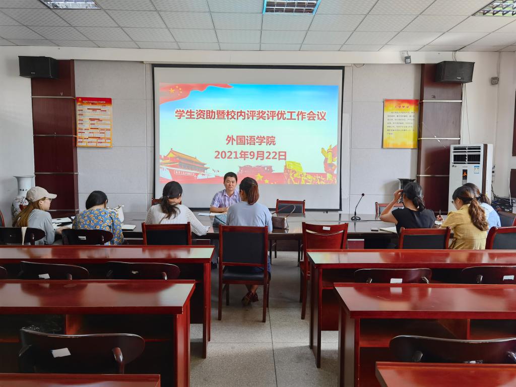 9月22日下午,外国语学院在会议室举行学生工作会议,布置学生资助暨校内评奖评优工作。外国语学院全体辅导员参加了会议。会议由外国语学院党委副书记刘军主持。