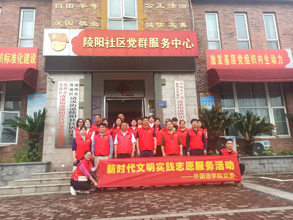 为加强党史学习教育,为群众办实事,发挥党员先锋模范作用,外国语学院党委于5月13日上午赴池州陵阳社区开展新时代文明实践志愿服务活动。