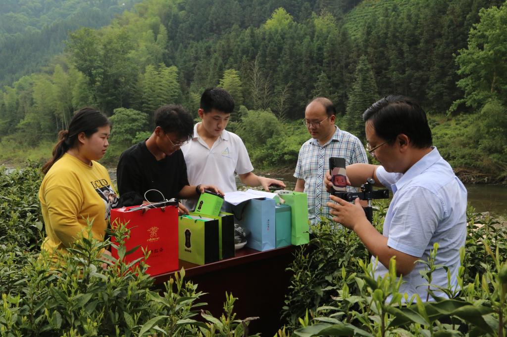 5月12日,商学院20级电子商务对口班张杨杨、曾宜、邵康、王健康、张家俊等9同学赶到石台县新棚村。石台县新棚有机茶专业合作社专业人员给同学们介绍茶叶制作工艺和产品知识。随后,同学们围绕电商直播准备工作,先后现场进行产品拍摄、美工、店铺创建、直播平台创建、产品上架、直播话术编辑等系列工作。