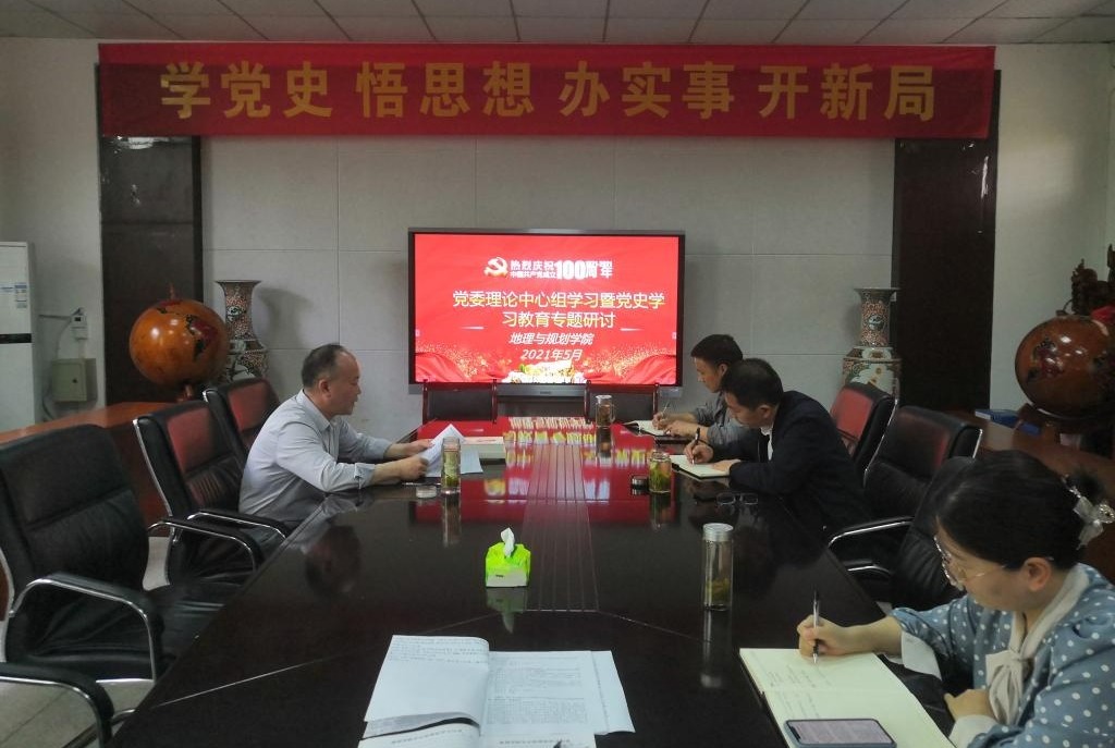 5月21日下午,地理与规划学院党委在博文南一楼会议室召开中心组理论学习暨党史学习教育专题研讨会,会议由地理与规划学院党委书记崔泽玉主持。