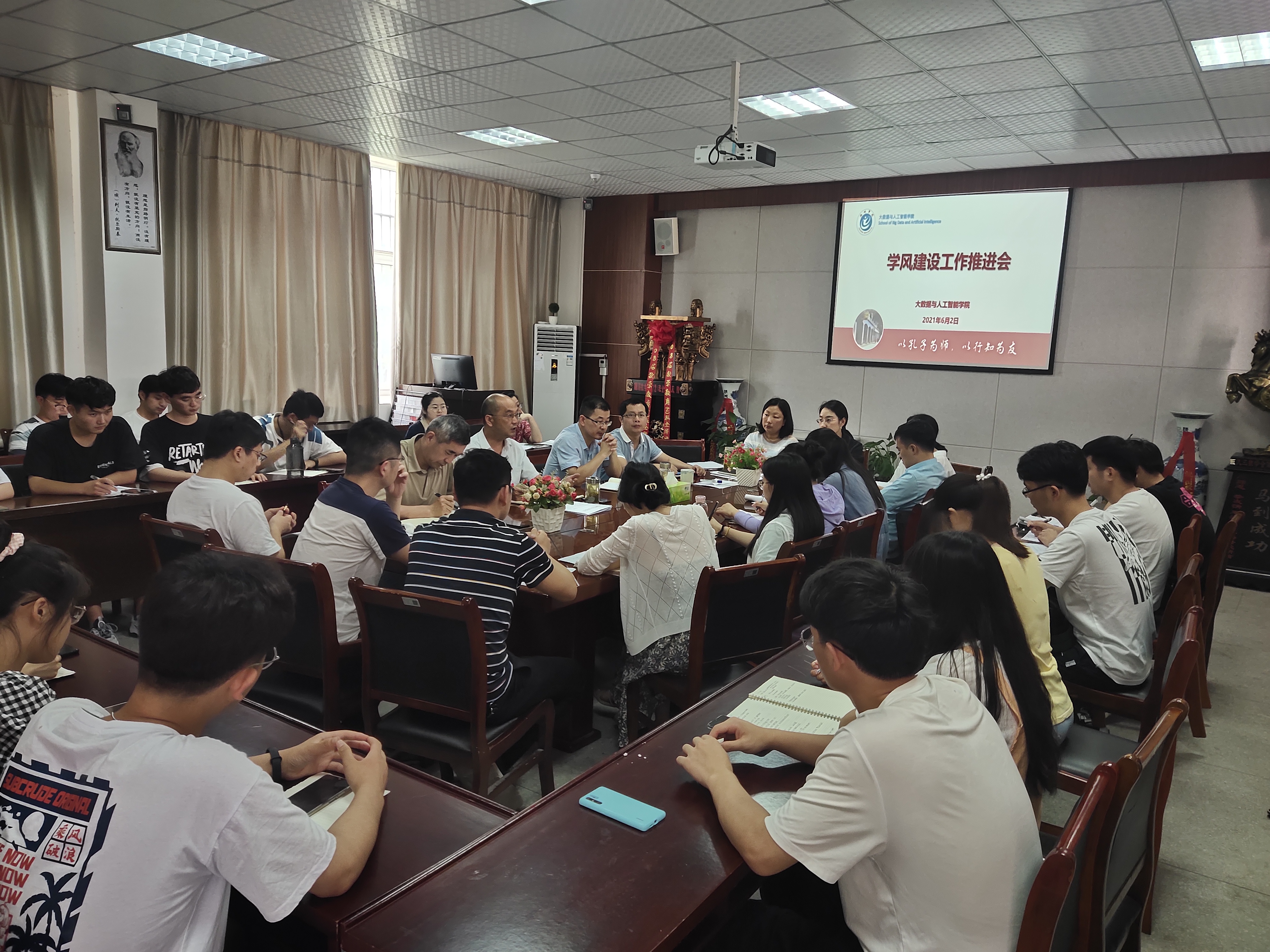 为贯彻落实立德树人根本任务,大力推进学风建设,6月2日下午,大数据与人工智能学院在博奕南一楼会议室召开全院学风建设工作推进会,学院党政领导班子,全体辅导员,各班班长、团支部书记参加会议,会议由学院党委副书记詹春智主持。