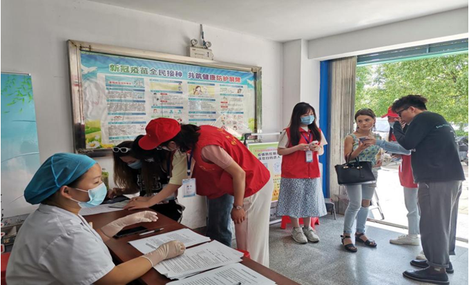 根据国务院联防联控机制统一部署,全面启动在皖外籍人士新冠疫苗接种工作。池州市外事办与外国语学院于5月29日在杏花村街道社区卫生服务中心开展志愿服务活动,助力外籍人士接种新冠疫苗。