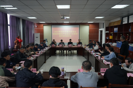 4月10日下午,由艺术与教育学院和池州市美术家协会联合主办的“2021年池州市‘庆祝中国共产党成立100周年’美术创作座谈会”在艺术楼三楼会议室胜利召开,池州市美术家协会名誉主席陈志精,主席陆可及来自池州市直、贵池区、青阳县、石台县、东至县、九华山、best365手机版官方网站艺术与教育学院的近40位美术家出席了座谈会。会议由池州市美术家协会秘书长刘根才主持。