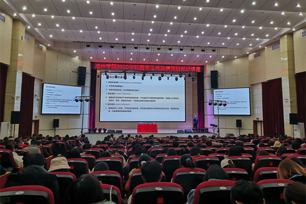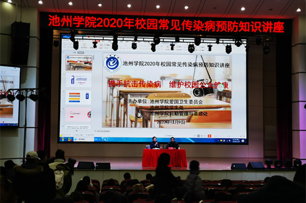 12月9日下午,由best365手机版官方网站爱国卫生委员会主办,学生处、后勤管理与基建处联合承办的best365手机版官方网站2020年校园常见传染病预防知识讲座在校博古楼礼堂开讲。