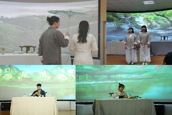 12月30-31日,旅游与历史文化学院旅游管理、酒店管理专业在博雅南404导游模拟实训室开展“迎元旦•品香茗”冬日茶会暨《茶艺与茶文化》课程实践考核活动,19旅管对口、17酒店管理全体学生通过汇演的形式展示了一学期的学习成果,共同迎接新年的到来。此项活动由《茶艺与茶文化》课程组沈姗姗、夏丽丽两位老师指导,査晓莉、黄沛、蒋辉等专业教师和20级旅游管理专业学生代表参与观摩。