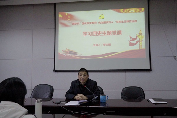 为深入开展“四史”学习教育,不断增强新时代大学生的社会责任感和历史使命感,教育引导广大学生党员厚植爱国主义情怀,11月25日,商学院学生党支部于院会议室联合举办“四史”学习教育主题党课,邀请院党委书记罗志刚作题为“学党史,知党情,做合格党员”专题党课。