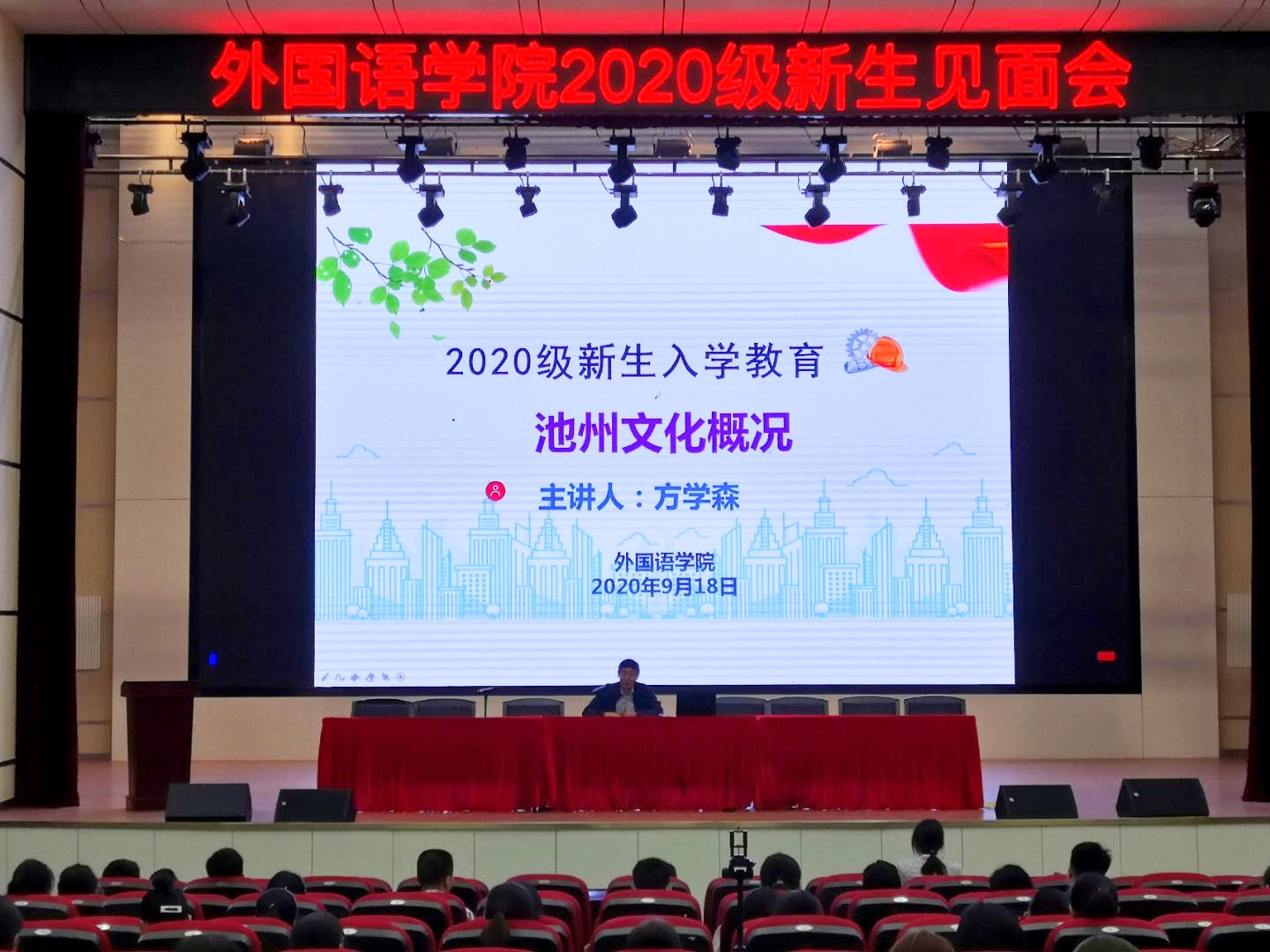 副院长方学森以“池州文化概况”为题,向新同学们介绍了池州地方文化的基本情况,指出民族的才是世界的,地方的才是全国的、全球的,勉励大家为将来向全世界讲好中国故事,传播中国文化作好准备。