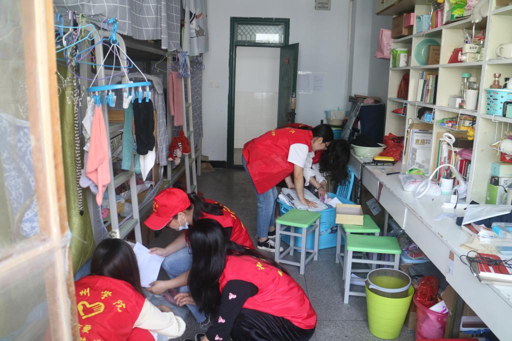 参加活动的党员教职工为学生打扫卫生、整理床铺、清理垃圾、打包邮寄物品,大家还细心的按照寝室门牌号和床位号为被子做了标签,将被子一 一拿出去晾晒。
