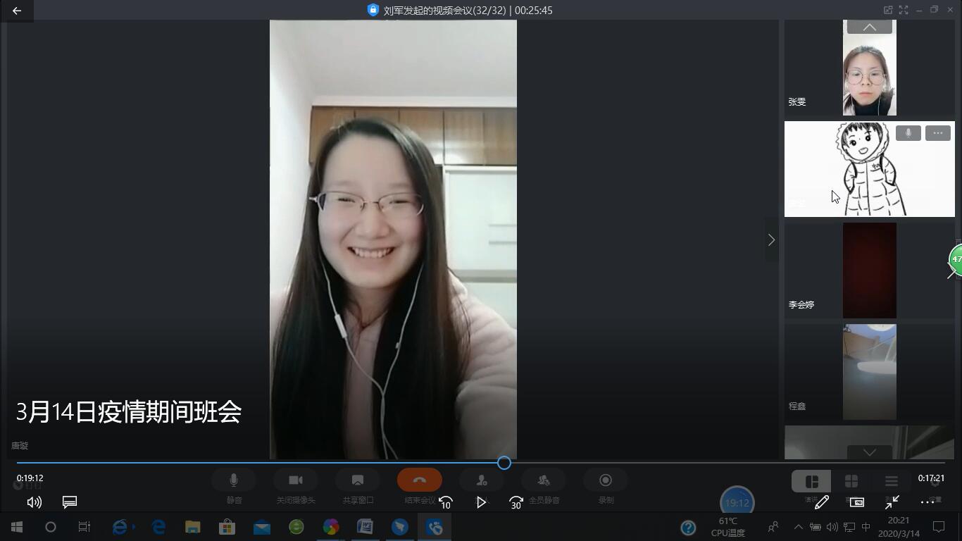 为缓解同学们长期居家生活紧张和压抑情绪,外国语学院各班辅导员通过电话、网络视频等手段全方位和学生们进行了一次访谈或交流,了解同学们居家生活、学习等情况,积极帮助解决问题、进行心理疏导。各班通过网络也积极开展了各种活动,如:16英语(商务)4班开展疫情期间生活交流会,让每位同学都通过镜头和大家分享疫情期间自己的生活和有趣的事情;18级商务英语3、4班开展了同唱一首外文歌;19级商务英语1、2班开展了同看一部剧;17级英语2班开展了同读一本书等活动。