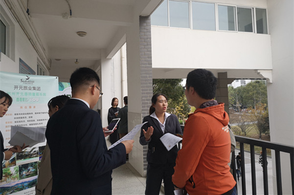 此次招聘会将我院专业特色与企业实际需求相结合,具有较强的针对性。经过前期认真的准备和筛选,吸引了南京银美旅行社、安徽环球文化旅游集团、开元森泊度假乐园、杭州开元名都大酒店、嘉兴万豪酒店、池州平天半岛大酒店等12家用人单位前来招聘。招聘会有用人单位集中宣讲、学生递交就业推荐表、用人单位与学生恰谈等环节,会场气氛活跃,秩序井然,学生参与度高,有多位学生与用人单位达成初步就业意向。