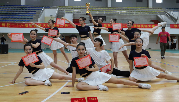 大赛中他们以明快奔放的动作挥洒出青春的风采,新颖别致的造型展现出力与美的结合,整齐而灵动的队列诠释了青春的激扬与奔放,他们用舞姿谱写自由的篇章。精彩表演的背后是他们近一个月坚持不懈的练习,精益求精的打磨和推敲,最终才能在大赛中拔得头筹。