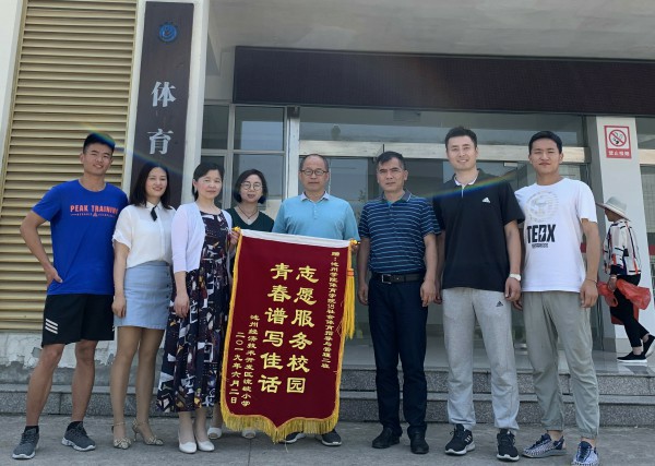 6月5日上午,池州经济技术开发区流坡小学来我院赠送“志愿服务校园、青春谱写佳话”锦旗,以感谢体育学院志愿者做出的成绩。