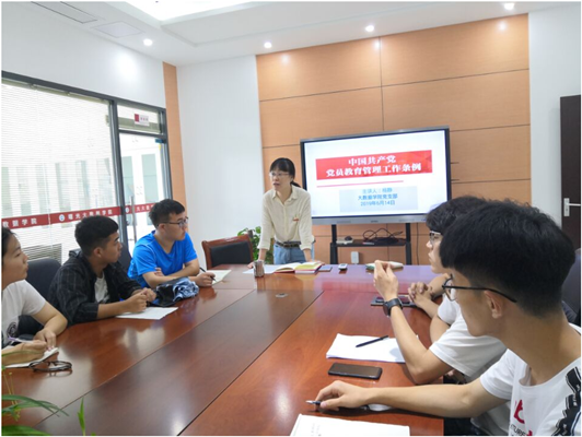 6月27日大数据学院党支部书记杨静在博古楼会议室讲授了以实际行动贯彻落实《中国共产党党员教育管理工作条例》为主题的思想政治教育课,全体学生党员和入党积极分子参加了学习。